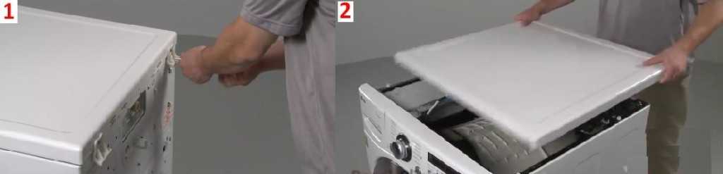 На первоначальном этапе без разборки стиральной машины ничего больше выяснить невозможно. Точно определить, что же сломалось в машине, без вскрытия корпуса нельзя, поэтому для уточнения проблемы снимем ее верхнюю крышку и посмотрим.