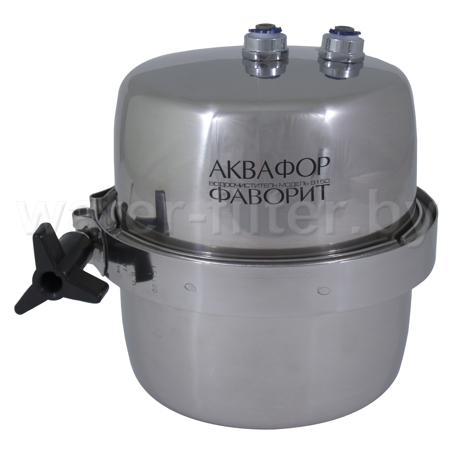 - «Фаворит» – металлический бочонок размером 18х20 см, в котором находится 1 модуль с фильтрующими материалами, выложенными слоями: активированный уголь и мембрана. Скорость фильтрации – 2,5 л/мин, ресурс 7000-12000 л. На сайте представлено 3 разновидности этой модели. Цены: 6500-7635 р.