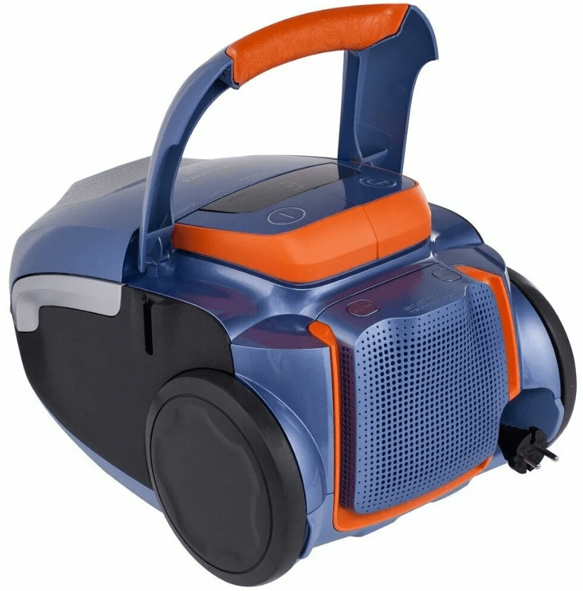 Модель безмешковая, оборудована удобным быстро извлекаемым контейнером на 400 грамм. Также он поможет удалить жидкость. В комплекте идет насадка с силиконовыми губками для всасывания воды и напитков. Кроме этого, в наборе поставляется щелевая оснастка и щетка.