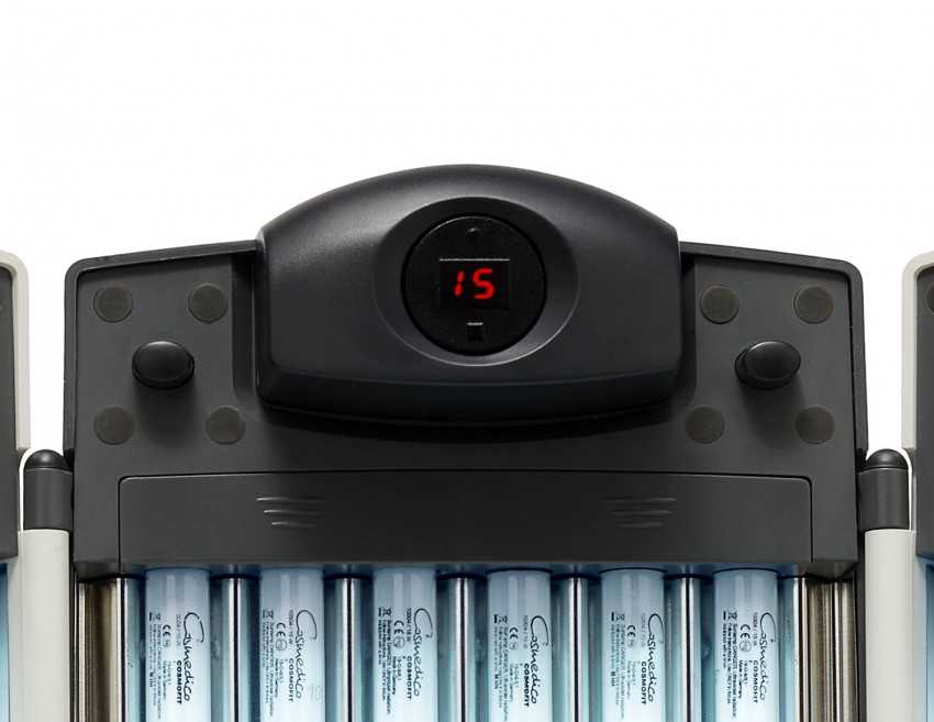 Внушительный по габаритам прибор, по сути, настоящая установка для профессионального загара дома. Имеет таймер, систему бесшумного охлаждения, 10 вертикальных ламп на штативе с подставкой. Можно регулировать угол наклона, ставить вертикально и горизонтально. По отзывам покупателей, загар ложится ровно, но довольно медленно. При регулярном использовании менять лампы потребуется 2–3 раза в год, удовольствие недешёвое. Требуется много места для хранения, подойдёт скорее для частного дома, чем для квартиры в типовой многоэтажке.