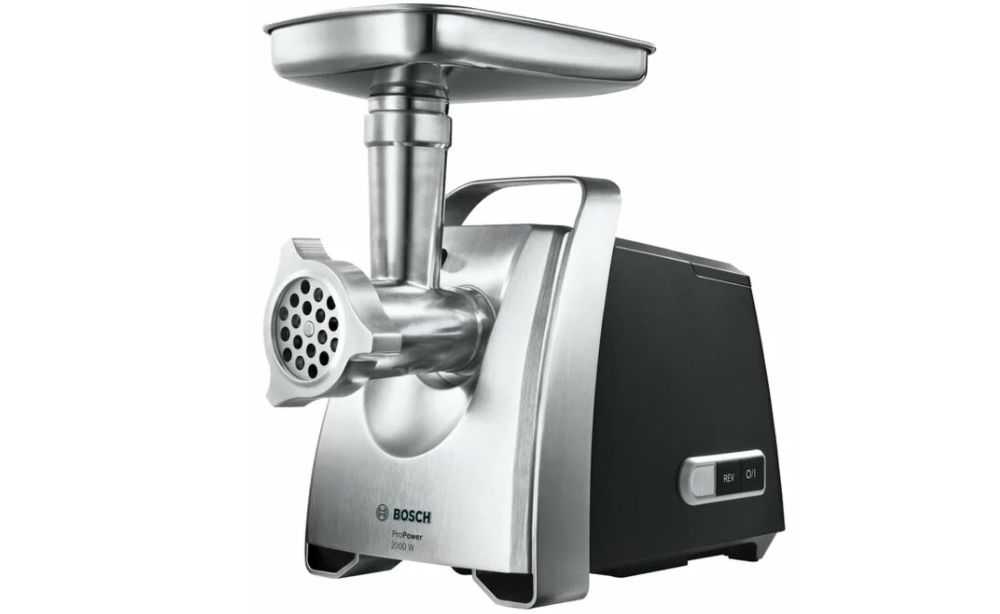 Данная модель относится к премиум-классу. Она обладает небольшой мощностью в 500 Вт, но с легкостью справляется с любым видом мяса. Мясорубка без сложностей перемалывает жилистую говядину, мясо с хрящиками и подмороженные продукты. Ее стильный корпус изготовлен из прочного пластика, за которым легко ухаживать. В комплекте идут дополнительные решетки для фарша — 3,4 и 8 диаметра. Также здесь вы сможете найти насадку для колбасок, кеббе, терку, шинковку, нарезку и цитрус-пресс, которая поможет вам выдавить сок из цитрусовых. BOSCH славится своей качественной и надежной техникой, поэтому вы можете не опасаться за хорошую производительность данной модели.