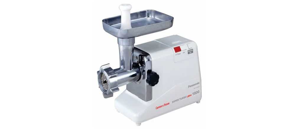 Фирма-изготовитель Панасоник представляет полупрофессиональную мясорубку японской сборки по ощутимой цене. Максимальное время непрерывной работы составляет уже до 15 минут. Оборудована металлическими шестернями. Кнопки механические, тугие, ребенок случайно включить устройство не сможет.