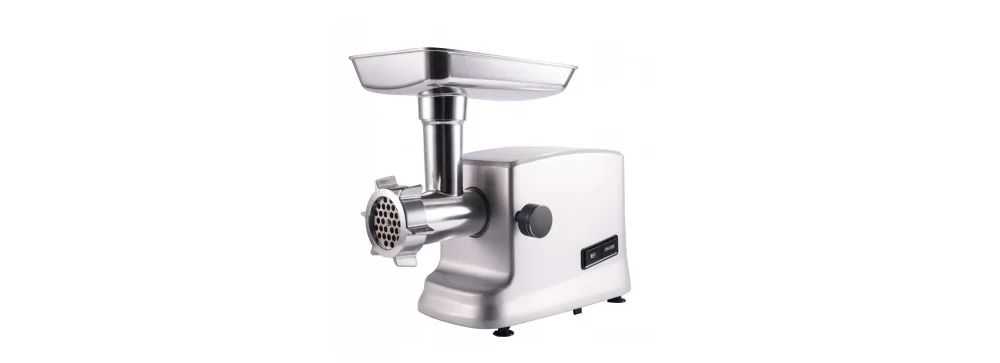 Мясорубка Gemlux GL-MG1800ADC используется на предприятиях общественного питания и торговли для переработки мяса и приготовления фарша и колбасных изделий. Модель оснащена функцией реверса, которая позволяет в случае блокировки шнека продуктом освободить его без необходимости разбирать и очищать прибор. Корпус выполнен из алюминия. В комплект поставки входят 1 нож, 2 решетки, толкатель и насадка для приготовления колбасок. При этом на данные эл мясорубки с металлическими шестернями цена лежит в довольно приятном горизонте.