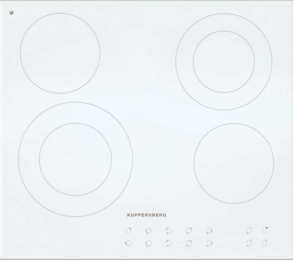 Привлекает прежде всего потрясающим белым дизайном. Мощность составляет 6300 Вт. Стеклокерамическая поверхность оборудована конфорками Hi-Light, причем две из них обладают расширяющимися зонами. Полезные опции: автоматика закипания, таймер отключения, автоматическое прекращение работы, индикатор остаточного тепла, защита от детей и самодиагностика неисправностей.