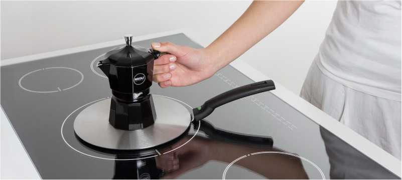 Адаптер позволяет готовить на индукционной плите в любой посуде, например, очень маленькой или сделанной из немагнитного материала
