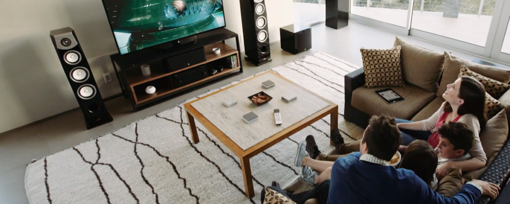 Система, которая способна воспроизводить звук и видеоизображение на специальных устройствах, установленная в жилом помещении и позволяющая комфортно прослушивать контент. Обычно состоит из нескольких колонок (5 и более).