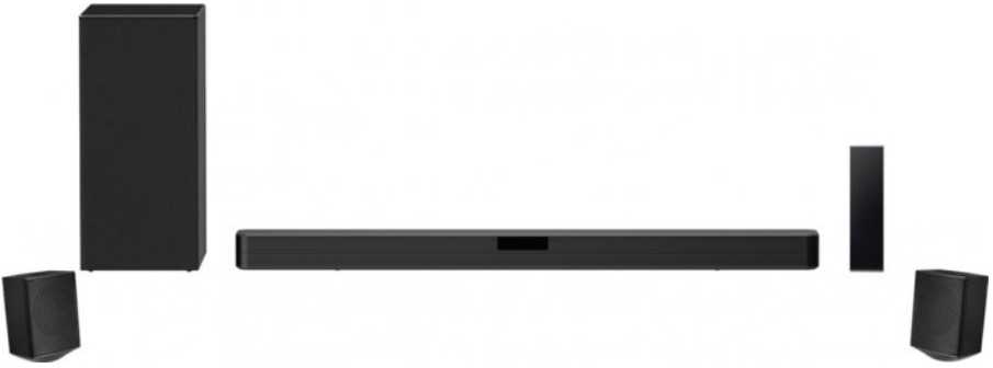 Устройство стандарта 3.1 со встроенным центральным каналом, одной фронтальной колонкой имеет общую мощностью 420 Вт. Высокая чувствительность 82 дБ передаёт отличный звук (чистый, объёмный). Корпус закрытого типа, есть 2 полосы, беспроводное подключение сабвуфера. В качестве входов выступают цифровой оптический и HDM, выход – HDMI. Есть Bluetooth, декодеры: Dolby Digital, DTS, DTS Virtual X. Настройку можно производить с помощью пульта ДУ от телевизора или через смартфон Bluetooth Remote App.