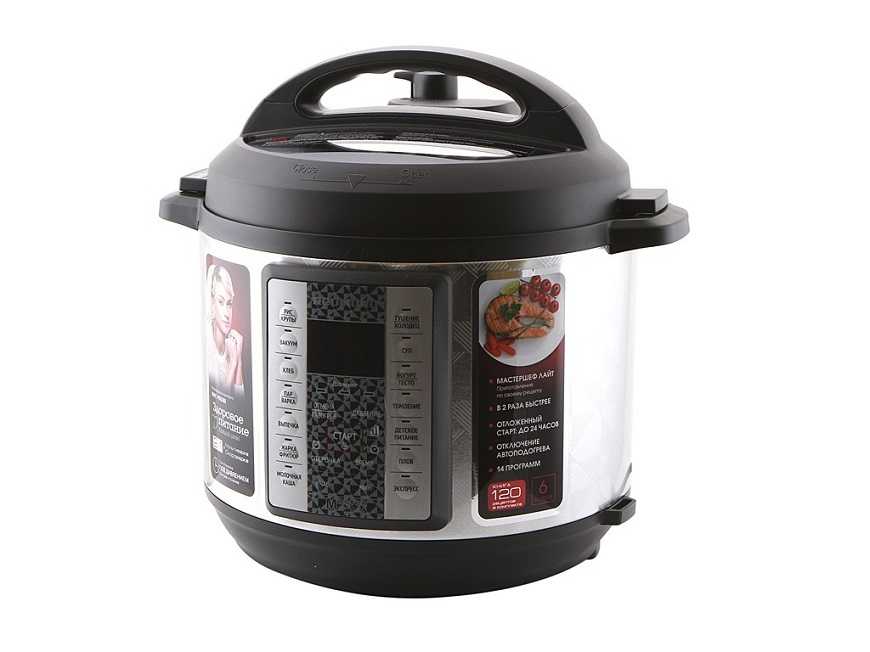 Эта мультиварка-скороварка базируется на технологии индукционного нагрева, и обладает значительной мощностью — 1200 Вт. Зато время отложенного старта и автоподогрева у нее поменьше — 12 часов. Чаша пятилитровая, контейнер для конденсата есть.