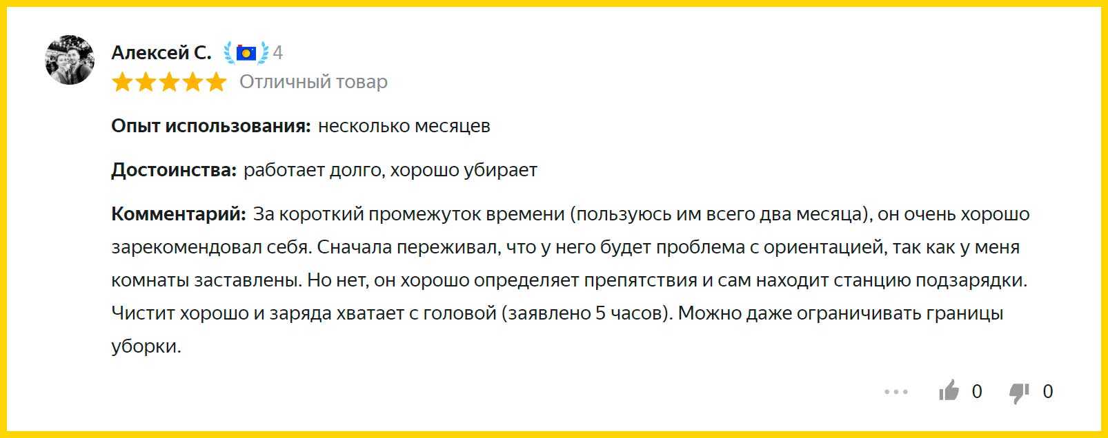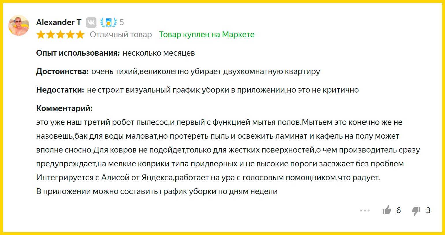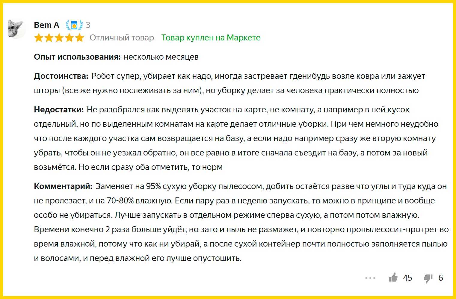 Робот хорошо пылесосит и оставляет после себя чистый пол, с режимом влажной уборки проблем тоже нет. Перемещаться по квартире он может по-разному, в зависимости от желания пользователя. После окончания уборки всегда возвращается на базу. Установлен неплохой аккумулятор, которого всегда хватает на полноценную уборку квартиры. Управлять устройством можно с помощью смартфона, подключаясь по Wi-Fi. В комплекте есть виртуальная стена, так что зону работы можно легко ограничить. Шума от пылесоса не много, а контейнер для мусора очень удобный.