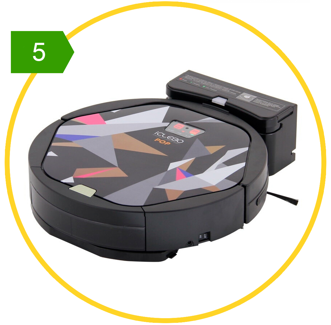 В комплект входят два контейнера: один для сухой, другой — для комбинированной уборки. Еще один важный момент: если у робота разряжается батарея, он возвращается на базу, а потом снова продолжает работать. У многих недорогих моделей режима возврата нет, они могут начать уборку только заново. Судя по характеристикам, аккумулятора хватает на пару часов работы (но это в идеальном случае).