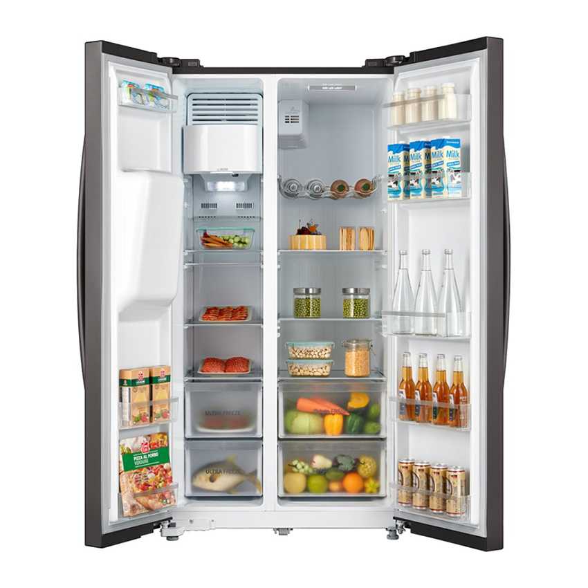 Многодверная конструкция с технологией No Frost, которая дает возможность быстро, без участия человека размораживать оборудование. Это устройство подойдет для тех, кто постоянно запасается большим количеством продуктов, так как имеет удобные полки, выдвижные ящики и подставки. Для большей безопасности присутствует антибактериальное покрытие, которое исключает развитие вредных микроорганизмов. Поэтому скорой порчи продуктов не произойдет.