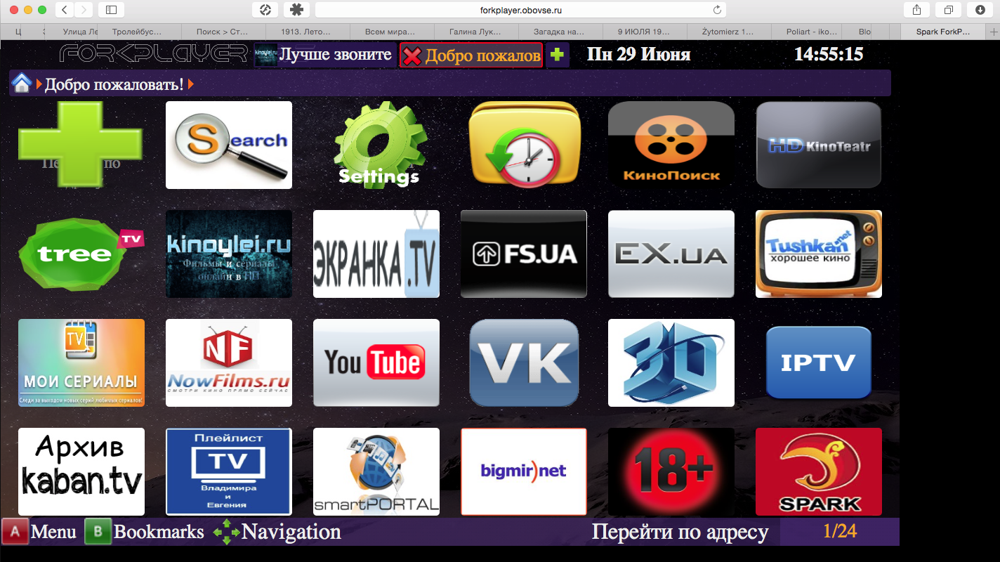 Помимо сёрфинга интернета ForkPlayer даёт возможность создавать и использовать пользовательские плейлисты.