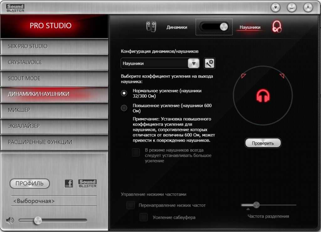 Выбор режима наушников в настройках вашей звуковой карты