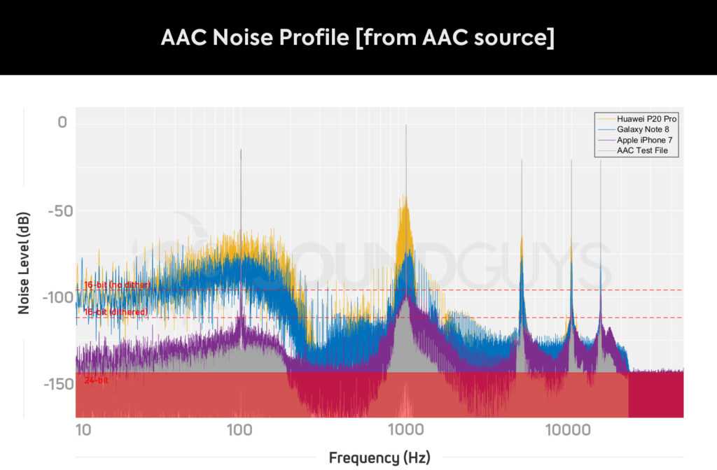 Уровень фонового шума при воспроизведении музыки в формате AAC и обработанной кодеком AAC