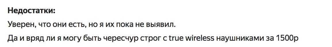 Есть проблемы с надежностью: с тем, как держат заряд, через полгода “умирает” один из наушников (обычно левый). Многое зависит от конкретной партии – есть удачные экземпляры, есть и те, где много брака.