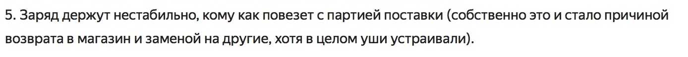 Время работы – у кого-то наушники работают от одного заряда меньше часа, у кого-то – по 3,5. Не исключено, что кто-то просто пользуется подделками.