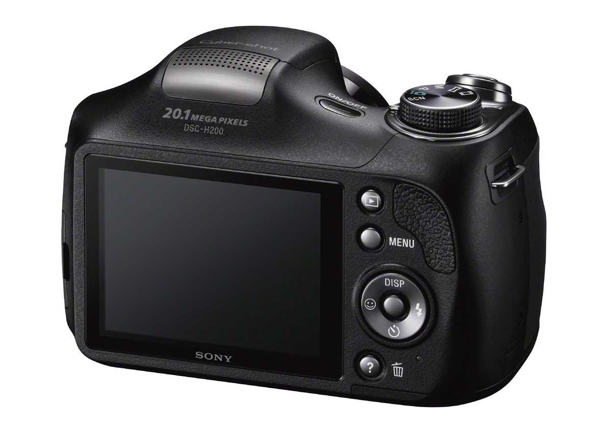 Sony Cyber-shot H200 — 20,1 эффективных мегапикселя, CCD-матрица Super HAD, объектив Sony с 26-кратным оптическим зумом, съемка видео высокой четкости, режим Intelligent Auto, фильтр Beauty Effect, технология Advanced Flash, совместимость с батареями AA («пальчиковые»).