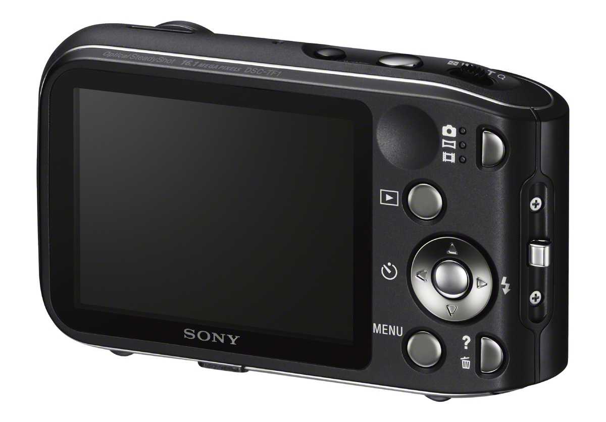 Sony Cyber-shot TF1 — ударопрочная и морозостойкая камера с защитой от пыли, которая выдерживает погружение в воду на глубину до 10 м 5 . 16,1 эффективных мегапикселя, CCD-матрица Super HAD, объектив с 4-кратным оптическим зумом, оптическая система стабилизации Optical SteadyShot, съемка видео высокой четкости, фильтр Beauty Effect, технология Advanced Flash, представлена в черном цвете.