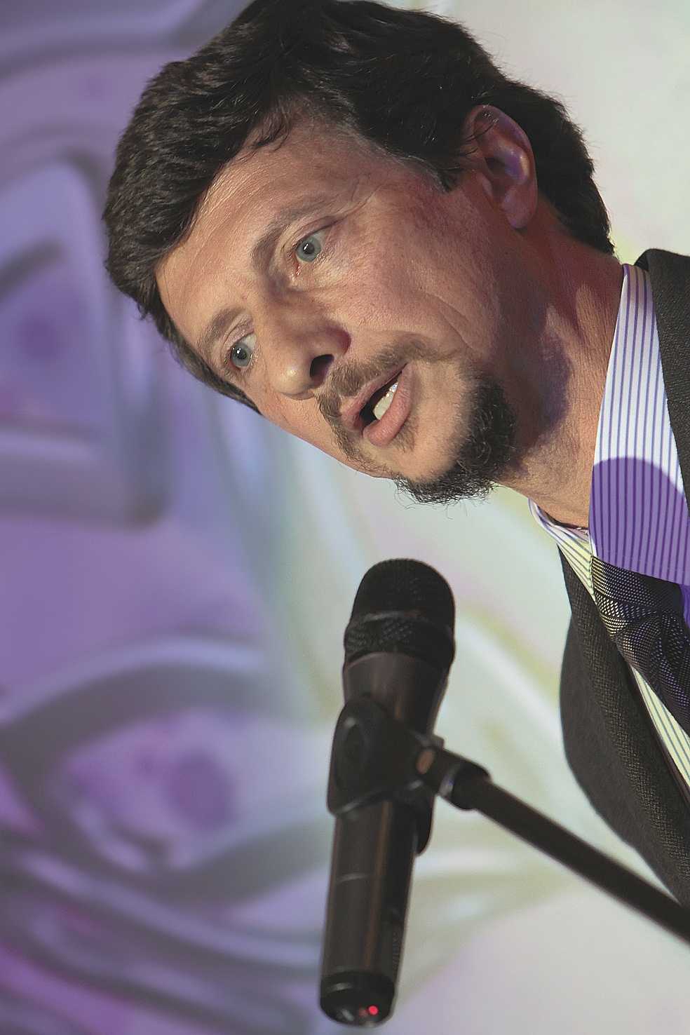 Фото 10. Пресс-конференция в темном зале. Простая работа с внешней вспышкой в программе. Высокая светочувствительность установлена для того, чтобы можно было применить отражатель, дающий объемный световой рисунок. Потолок в зале отсутствует (f/4, 1/60 с, ISO 800, объектив 70-200 мм, фокусное расстояние 200 мм).