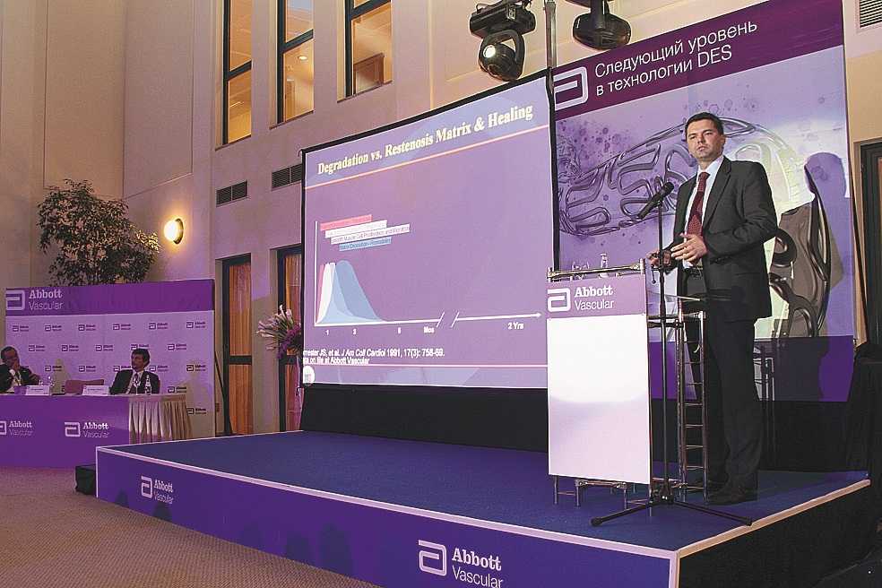 Фото 1. Международная презентация, докладчик освещен только светом проектора, транслирующего слайды на большой экран. Вспышку применить нельзя, она пересветит информацию на экране. Из помощи только монопод. Камера уверенно сфокусировалась на докладчике. Для снижения вибрации и звука затвора, а также для точности фокусировки пришлось применить режим Live View (f/3,5, 1/20 с, ISO 800, объектив 70-200 мм, фокусное расстояние 200 мм).