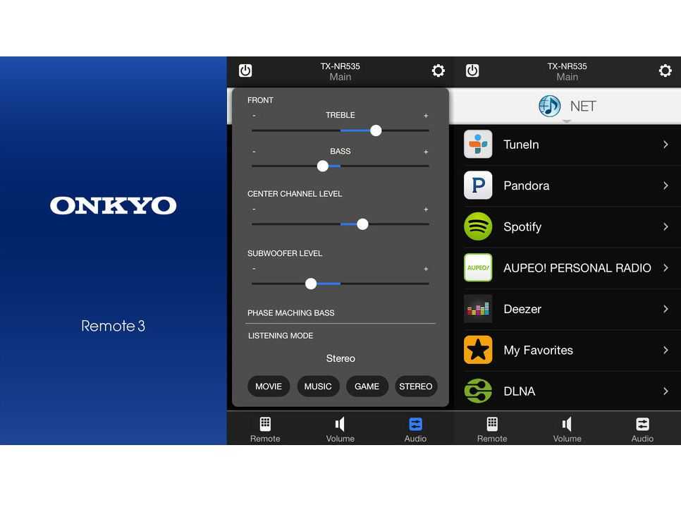 Владельцы сетевых приемников домашнего кинотеатра Onkyo 2009-2016 могут использовать приложение Onkyo Remote (Android) или Remote 3 (iOS), в то время как владельцам моделей Onkyo, выпущенных после 2016 года, необходимо использовать приложение Onkyo Controller App для iOS или Android.