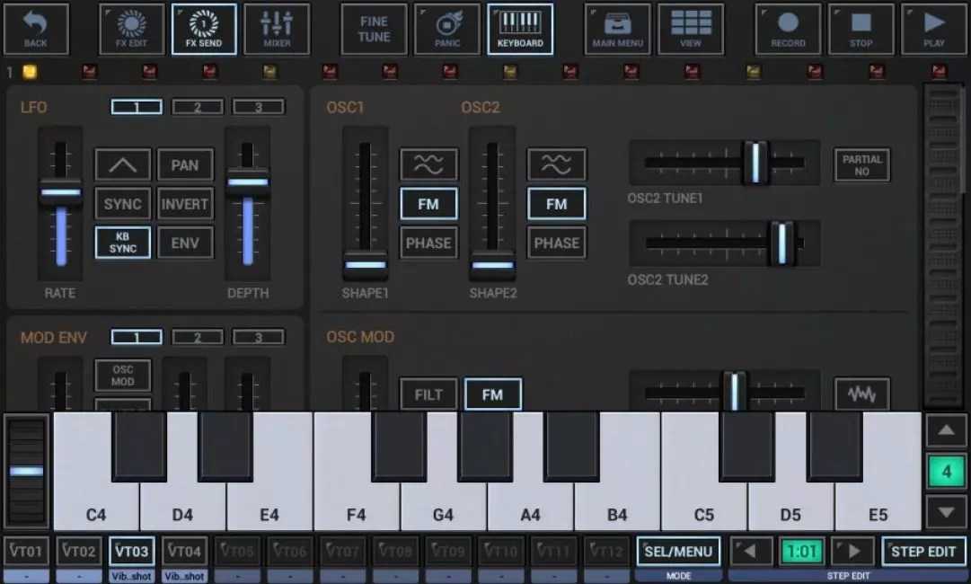 В данном приложении вы сможете найти такие инструменты, как драм машина, синтезатор, секвенсор, который предназначен в первую очередь для записи мелодии в реальном времени, а также линейный микшер. Стоит заметить, что в данной утилите вы можете использовать ЮСБ клавиатуру .