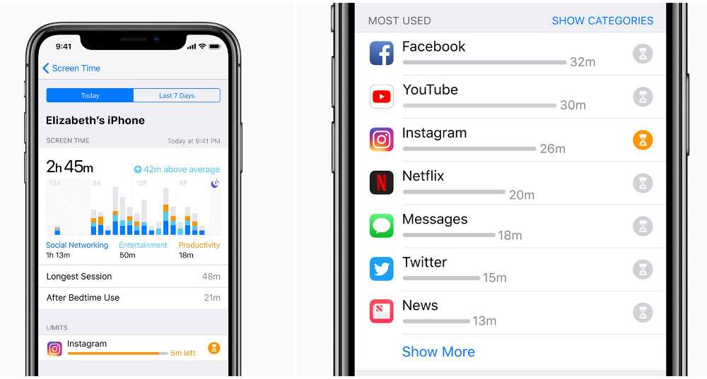 - считает временной интервал, на протяжении которого применяется приложение. К примеру, для игры можете поставить продолжительность не больше одного часа в сутки;