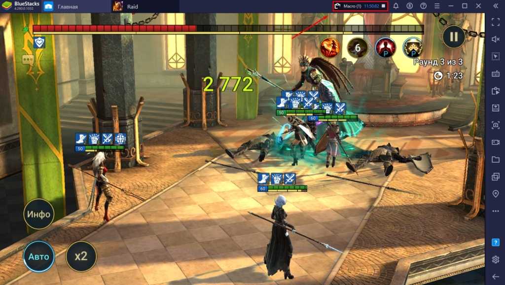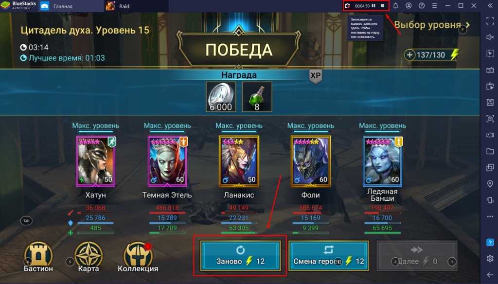 BlueStacks же позволяет в любой момент переместить окно, изменить его размер, выйти в другое окно эмулятора или вообще свернуть игру и заниматься своими делами хоть весь день. И это касается не только Подземелий. Можно настроить макрос для Войн Фракций, Кланового Босса, Роковой Башни, прокачки корма в Кампании на 12-3 «Невозможном» и даже для Групповой Арены.