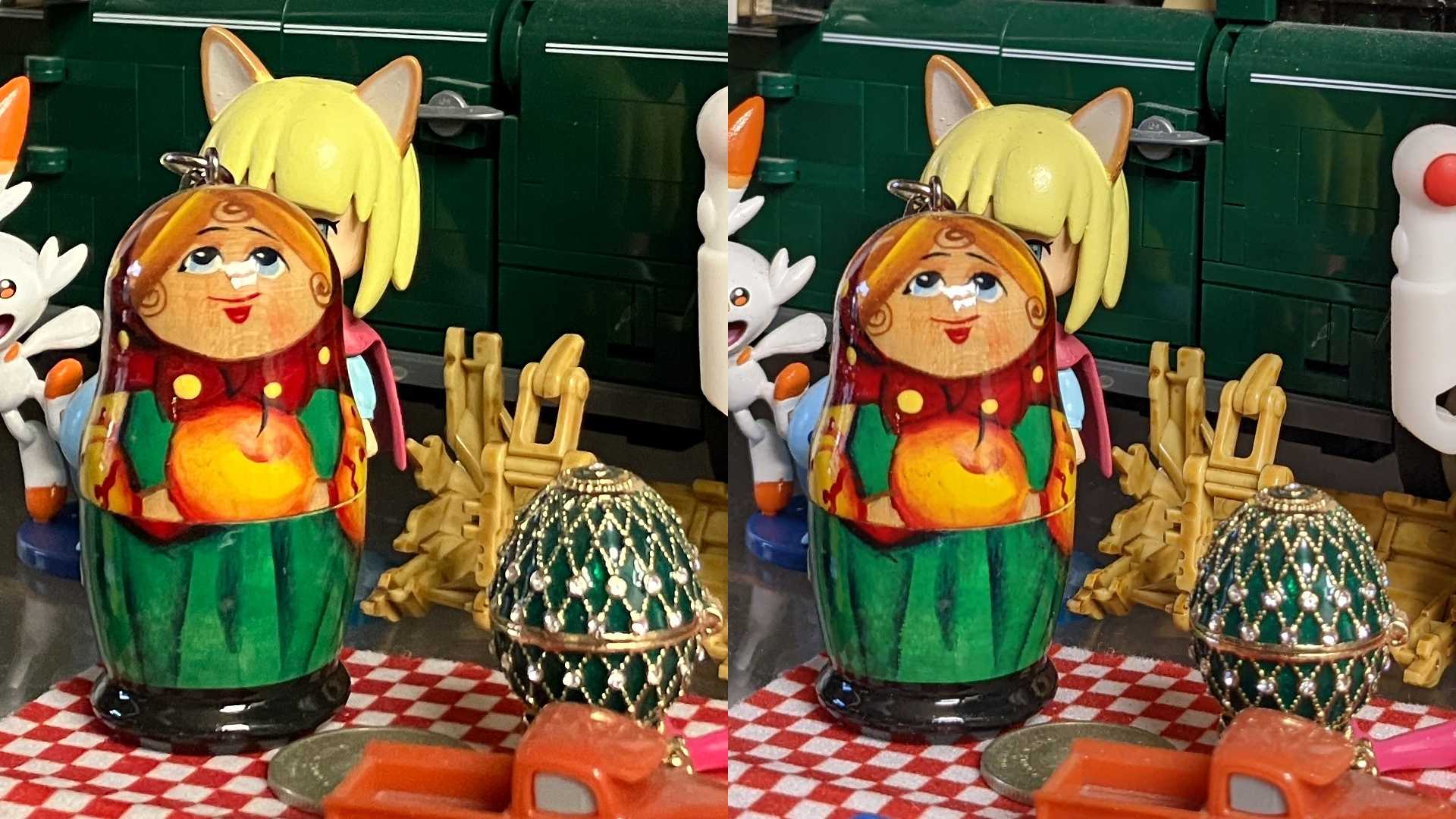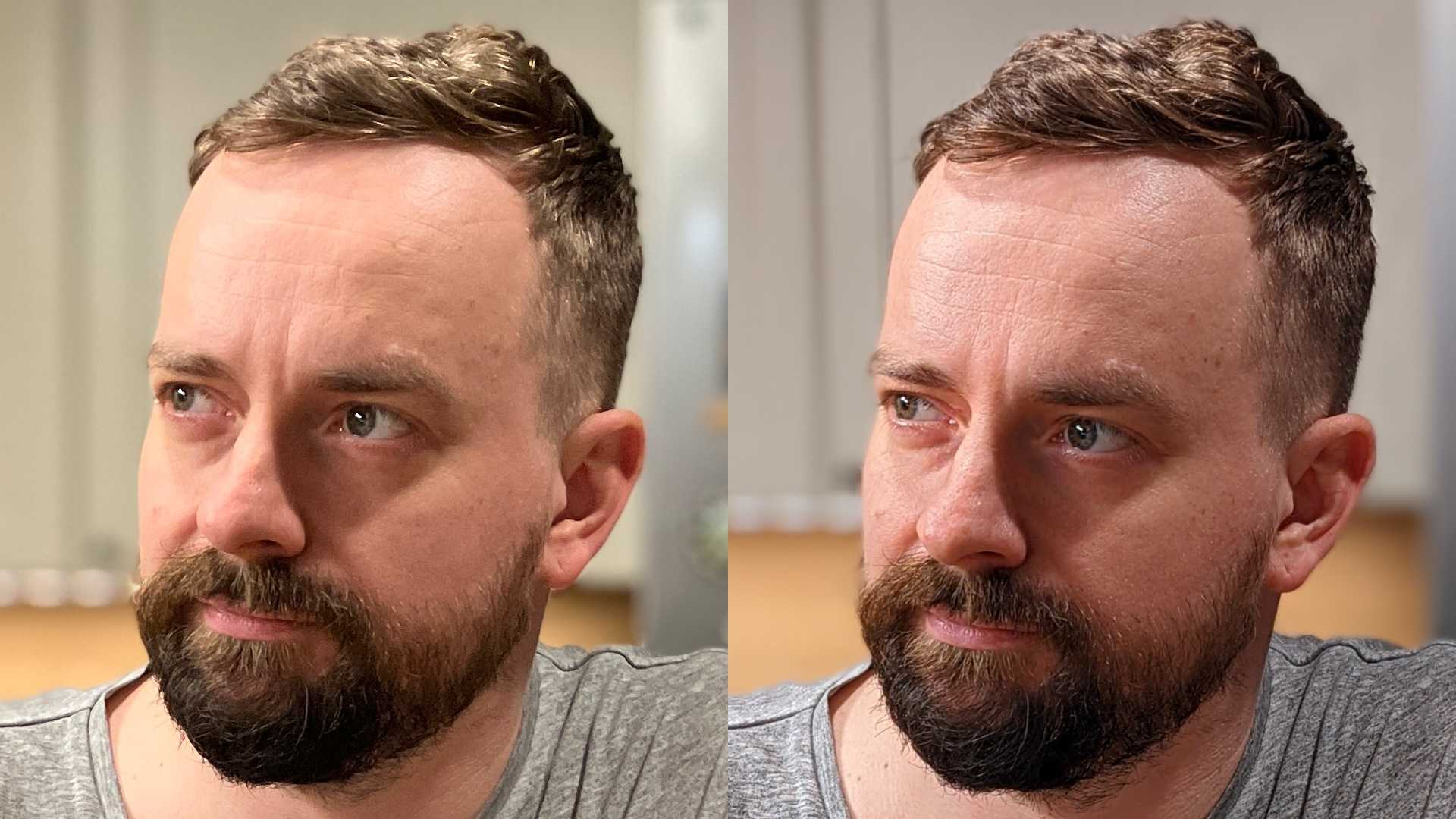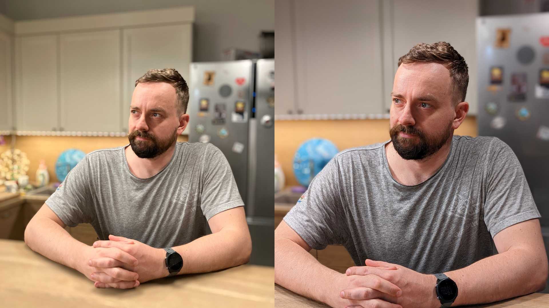 Я снимал с одного расстояния, но телефоны по-разному снимают в портретном режиме. Если iPhone выделяет портрет и замыливает фон вокруг, то Pixel обрезает часть кадра, предлагая более естественные пропорции без особых потерь в качестве. Зато iPhone точнее передаёт цвета кожи, на Pixel 5a получился неестественно розовый оттенок. Да и цвет кухонного шкафчика ближе к истине на левом кадре.