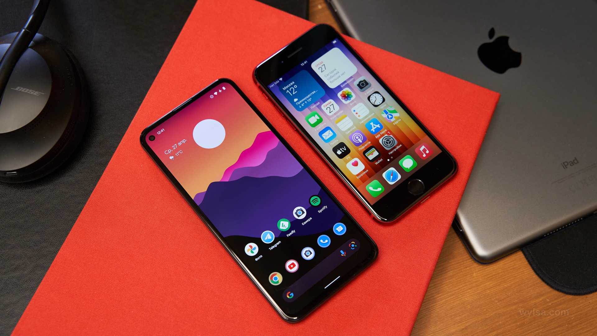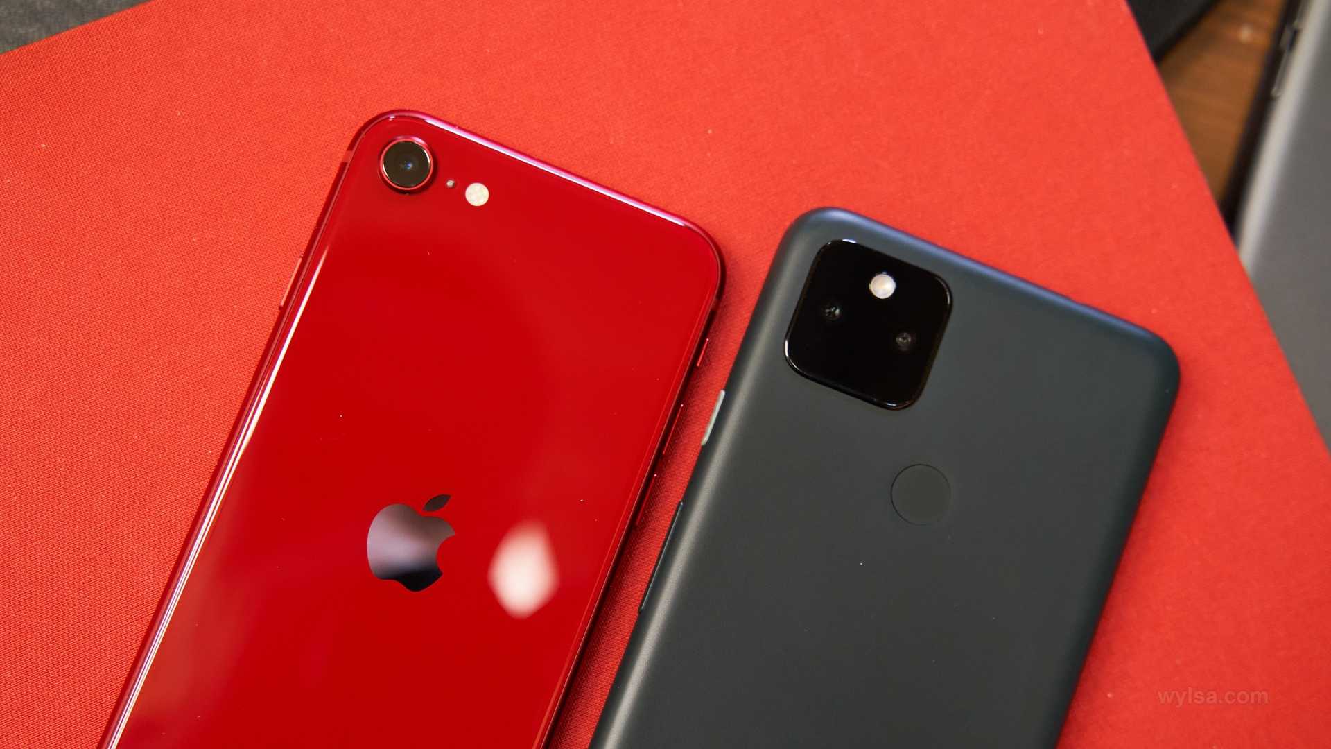 Слева iPhone SE, справа Google Pixel 5a