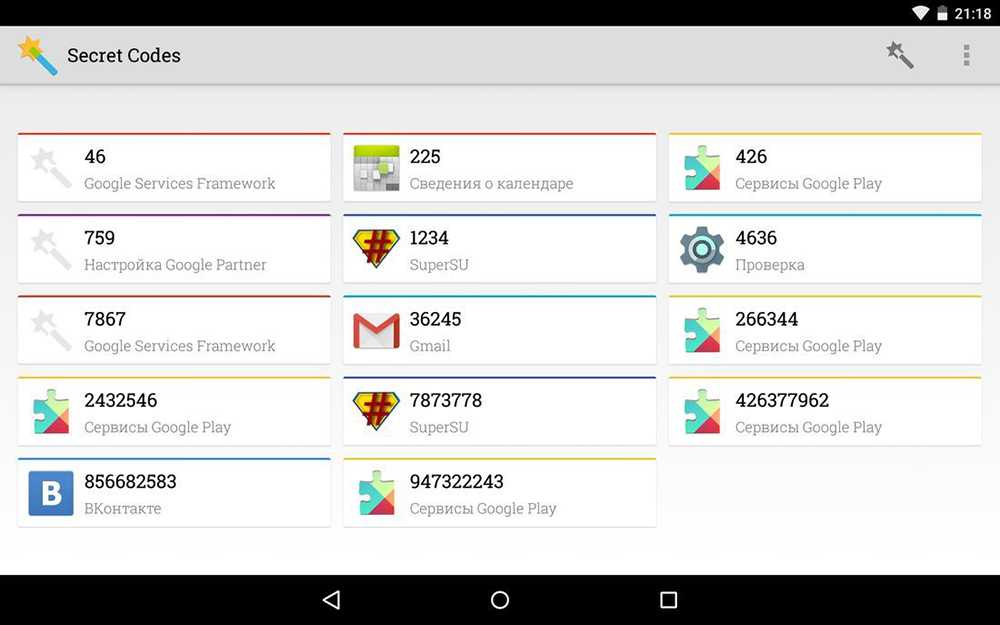 Большая часть из указанных кодов считаются общими для многих версий андроид и мобильных приспособлений.
