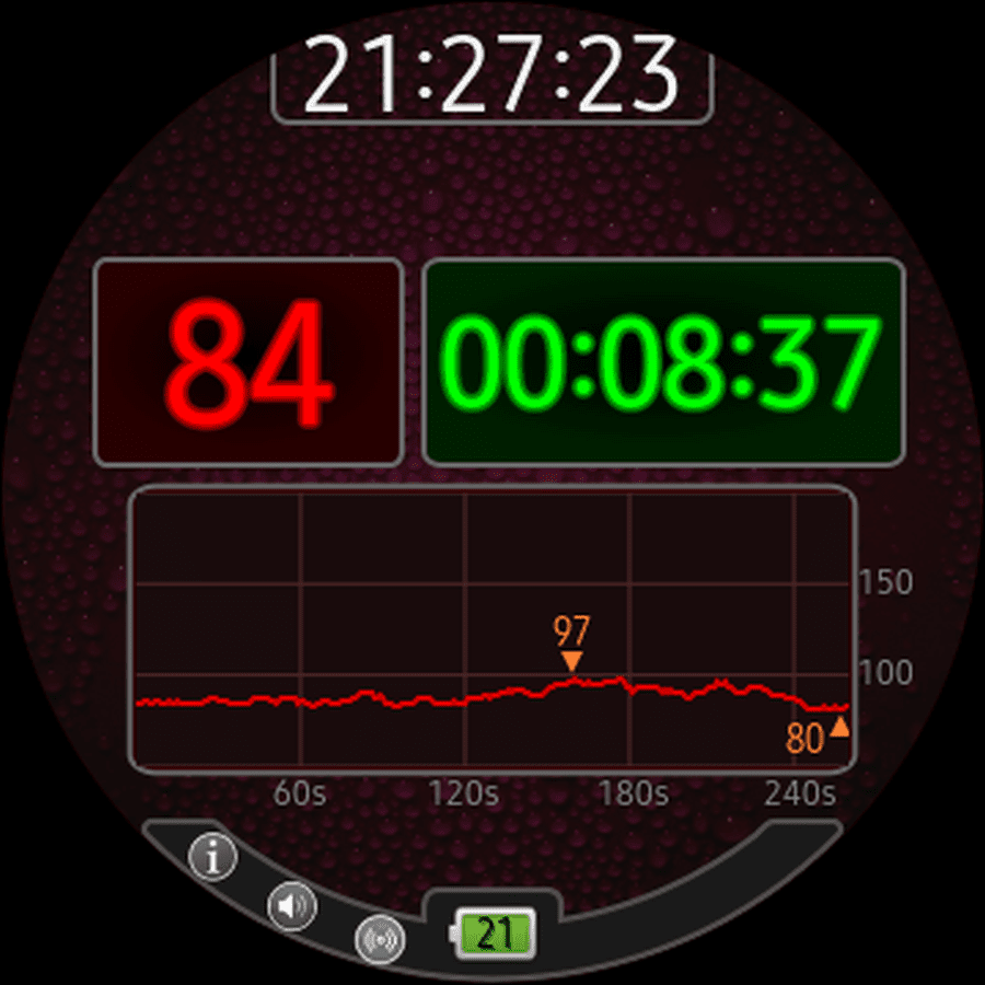 Приложение в форм-факторе часов позволяет управлять отслеживанием тренировок приложения с запястья, отображая общее затраченное время, расход калорий и текущий пульс в простом и удобном для чтения формате. Минус такой же как и предыдущего приложения — за полную функциональность придётся заплатить свои кровные.
