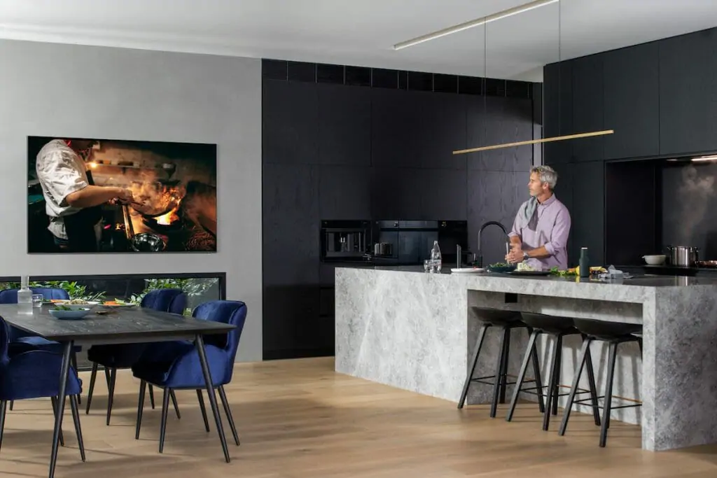Красота и резкость изображений буквально ошеломляют. Телевизор Samsung QE75Q900RBU 8K здесь не только отображает красивую картинку, но и звук добился беспрецедентного эффекта. Его ультратонкий профиль еще больше усиливает впечатление размера. Его приглушенный черный цвет позволяет ему гармонировать с любым интерьером. Благодаря коробке One Connect подключение осуществляется незаметно одним кабелем, чтобы не испортить этот очень красивый продукт и его безупречную отделку. Более того, режим Ambient позволяет использовать телевизор для отображения любимых фотографий в табличном режиме или отображения уведомлений.