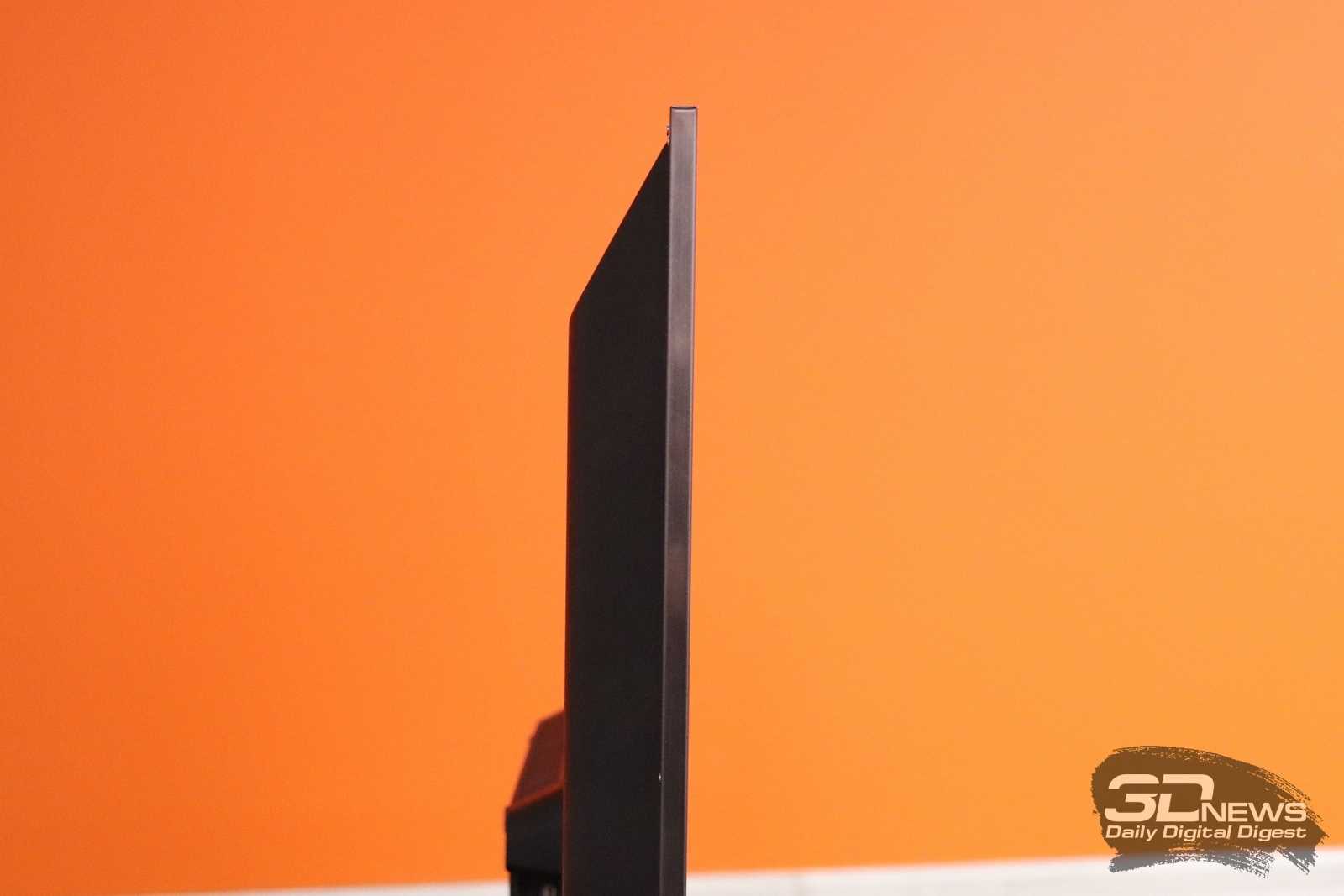 Корпус по современным меркам относительно «толстый» – среди прочего на это повлияла подсветка Direct LED, расположенная прямо сзади панели, а не сбоку. Вся задняя стенка пластиковая, разъемы расположены ближе к центру.