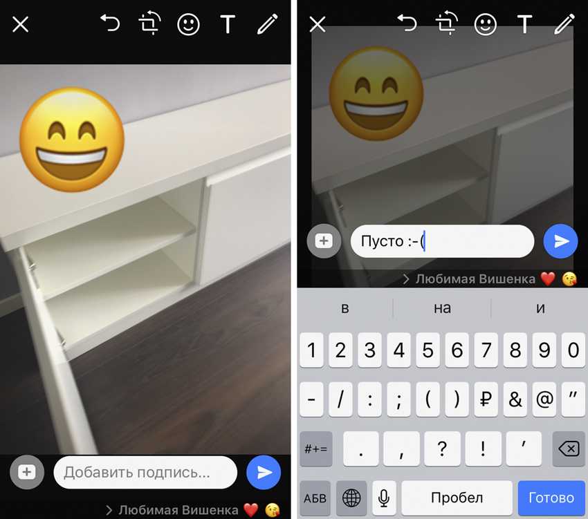 Добавляйте свою реакцию на фото и видео, которые отправляете