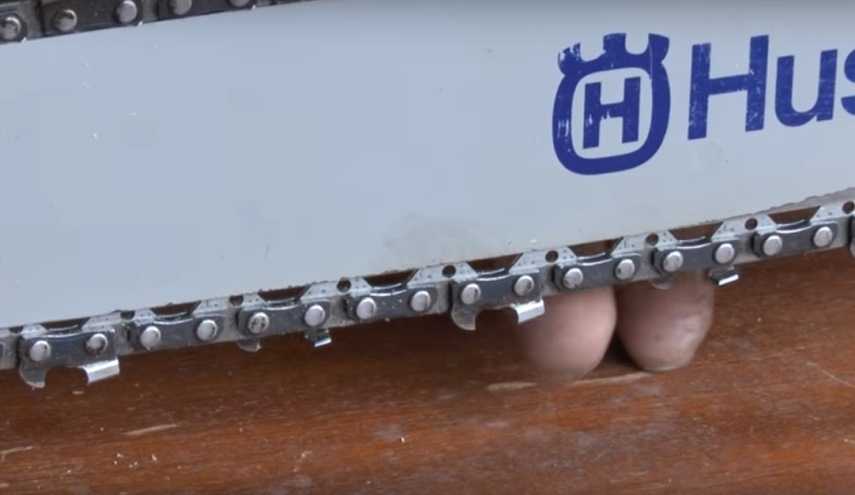 На практике, натягивая цепь на холодной бензопиле, надо исключить ее провисание. При этом прокручивание должно выполняться без существенных усилий.