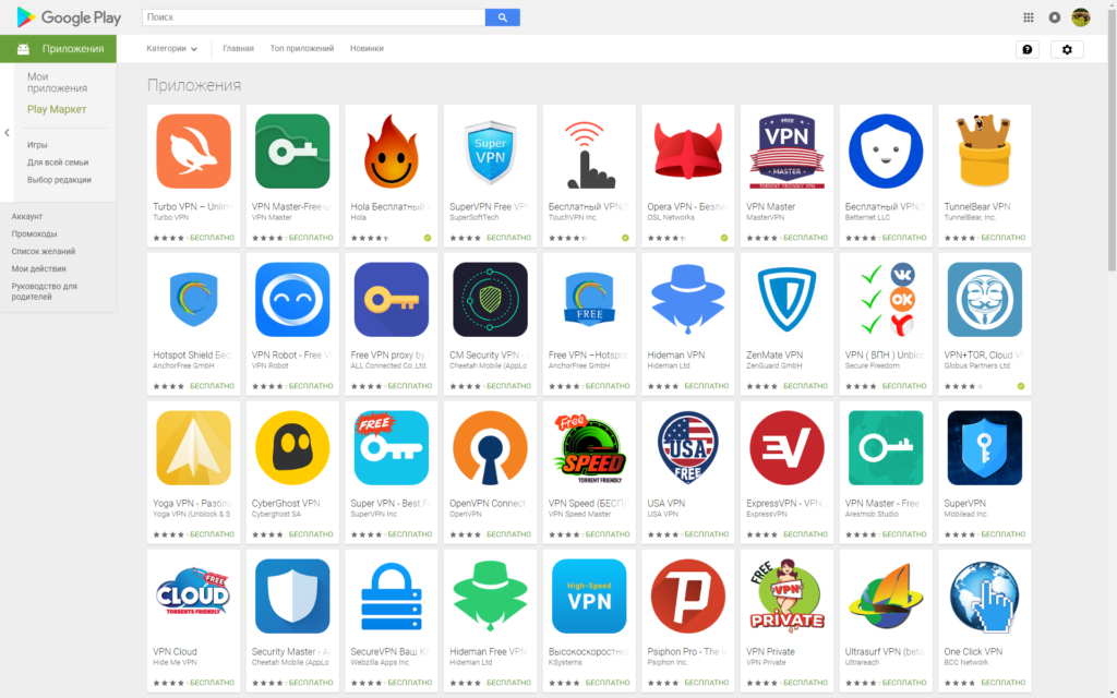Активировав подключение, вы увидите в панели уведомлений вверху экрана соответствующий значок.