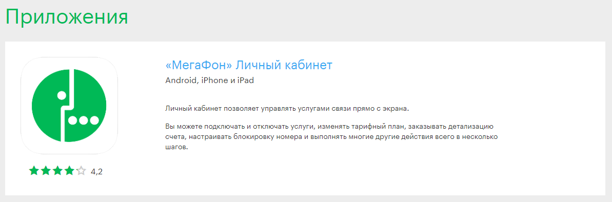 Кроме стандартных способов управления личным кабинетом, можно установить приложение «Мегафон», с помощью которого можно получить доступ ко всем возможностям платформы. Скачать его можно на устройства, которые работают на платформах iOS и Android.