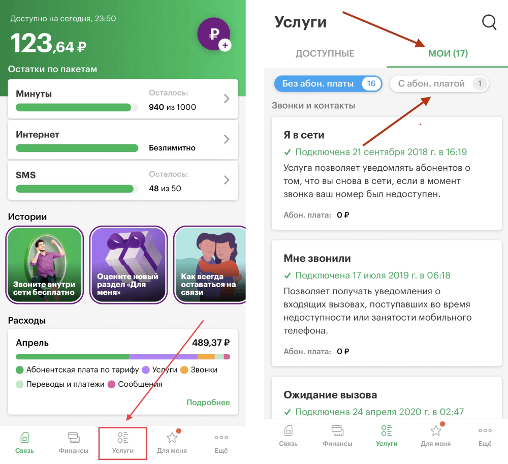 Интерфейс продуман до мелочей и по навигационной структуре похож с личным кабинетом. Все что вам нужно – это зайти в раздел Услуги» и деактивировать лишние.