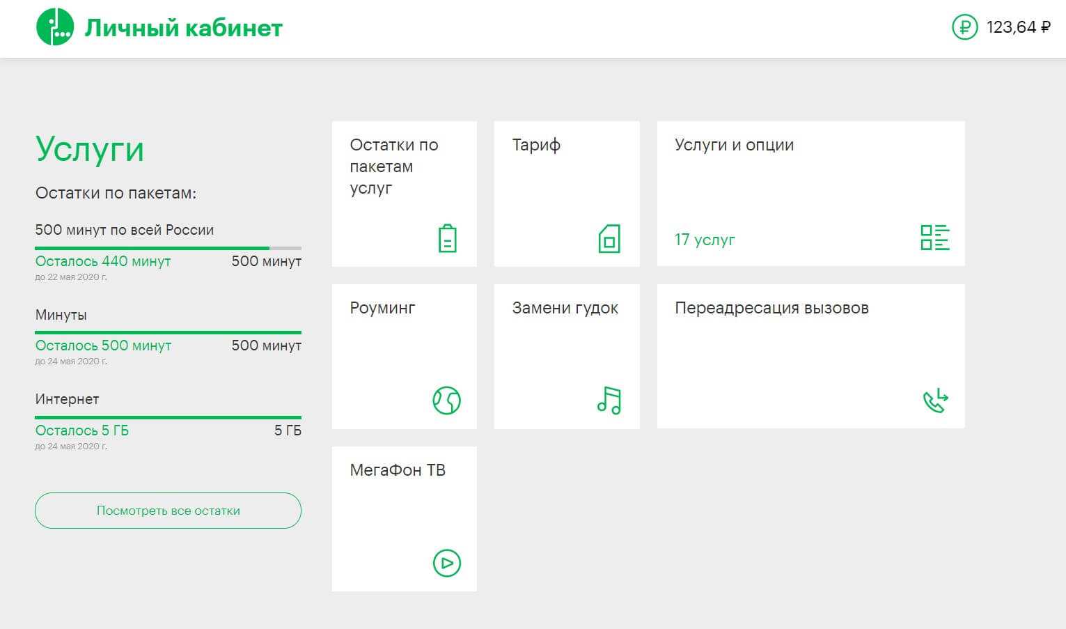 По иерархии этот пункт заслуживает первое место в списке, поскольку именно личный кабинет Мегафона в полной мере способен отобразить все доступные настройки и варианты подключения или отключения услуг.