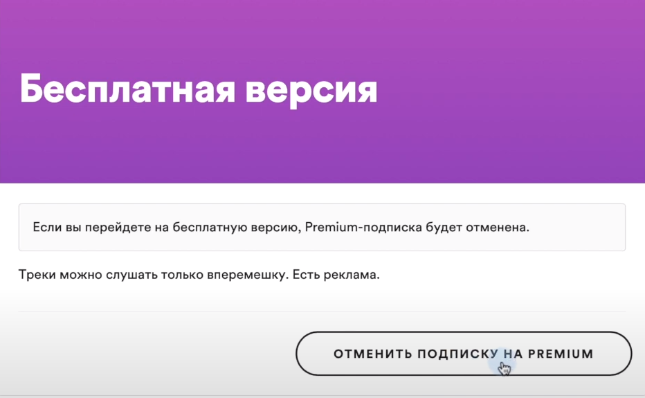 Остается подтвердить выбор посредством нажатия на соответствующую клавишу. Доступ будет отключен, однако пользоваться музыкальным сервисом Spotify можно до завершения оплаченного периода.