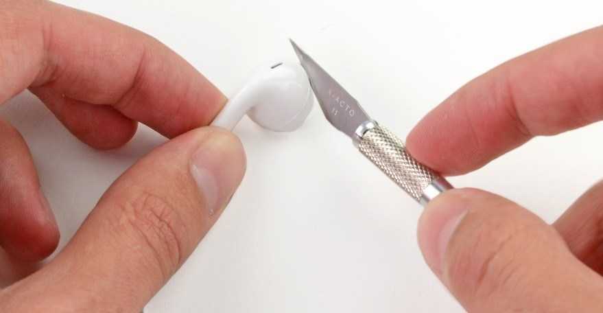 Если поломались дешевые наушники, разобрать их практически невозможно, потому что их склеивают намертво. Чтобы вскрыть неработающий наушник, понадобится скальпель или острый нож, которым поддевают половинку корпуса. После того как половинки раскроются. Можно произвести чистку корпуса наушников.