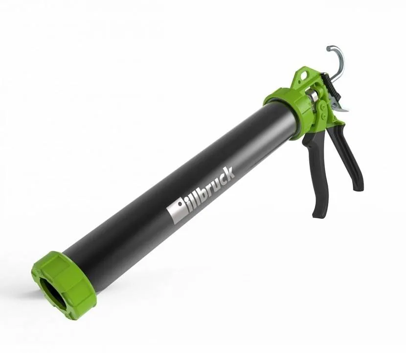 Пневматический. Один из наиболее надёжных инструментов для профессионалов. Может использоваться с тубами разных видов, универсален. Подача вещества осуществляется не движением поршня, как это происходит во всех остальных моделях, а за счёт давления нагнетаемого в тубу сжатого воздуха.