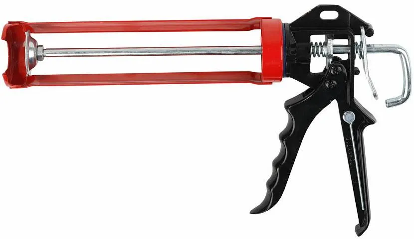 | Скелетные пистолеты, как и полукорпусные, справляются с тем же объемом работ. Отличаются они между собой тем, что скелетный пистолет удобнее в использовании. Он состоит из двух ребер и штока, что позволяет тубу с герметиком прочнее в нем закрепиться, в результате чего качество работ будет лучше. Стоимость скелетного пистолета выше полукорпусного, но и прослужит он дольше. |