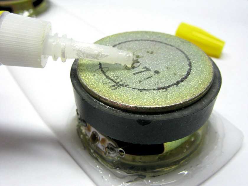 Сначала нанесите суперклей на края рамки с динамиком динамика, затем аккуратно расположите 2- стенку с динамиком и удерживайте его немного, пока они не будут хорошо приклеены.