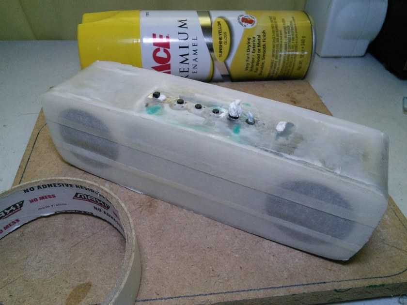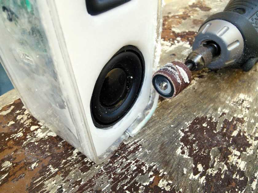 - Через сутки нанести 3 слой и добавлять по одному каждый день. Промежуток можно сокращать до 4-5 часов, что дает возможность ускорить работу, но общее качество может ухудшиться. Необходимо таким методом добиться толщины 1,5 см, вот почему вместо бумаги часто используют картонную основу. Когда стенки будут готовы, нужно сделать монтаж и подключение динамика к плате.