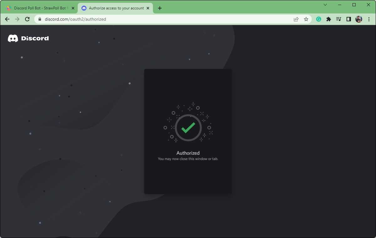 На следующей странице вам будет предложено подтвердить разрешения для бота StrawPoll. Прокрутите вниз и нажмите Авторизовать.