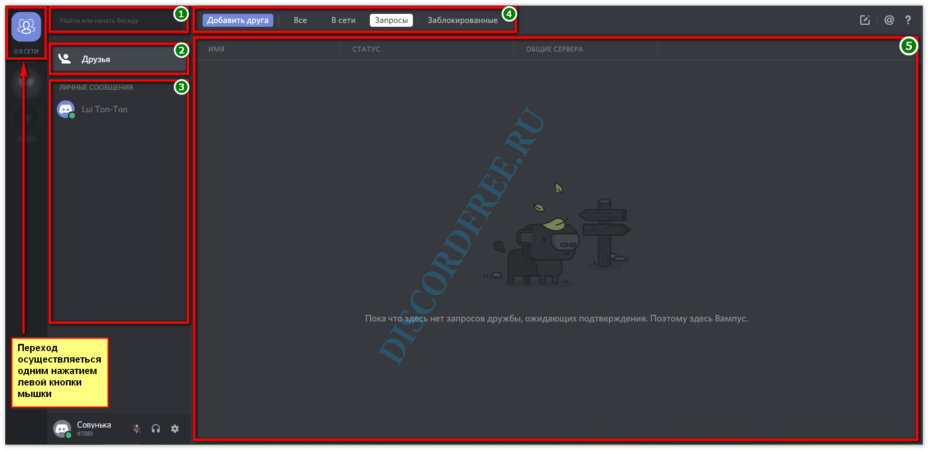 - Список текстовых и голосовых каналов. Можно создавать открытые и закрытые каналы с фиксированным количеством мест. Количество таких каналов – неограниченно.