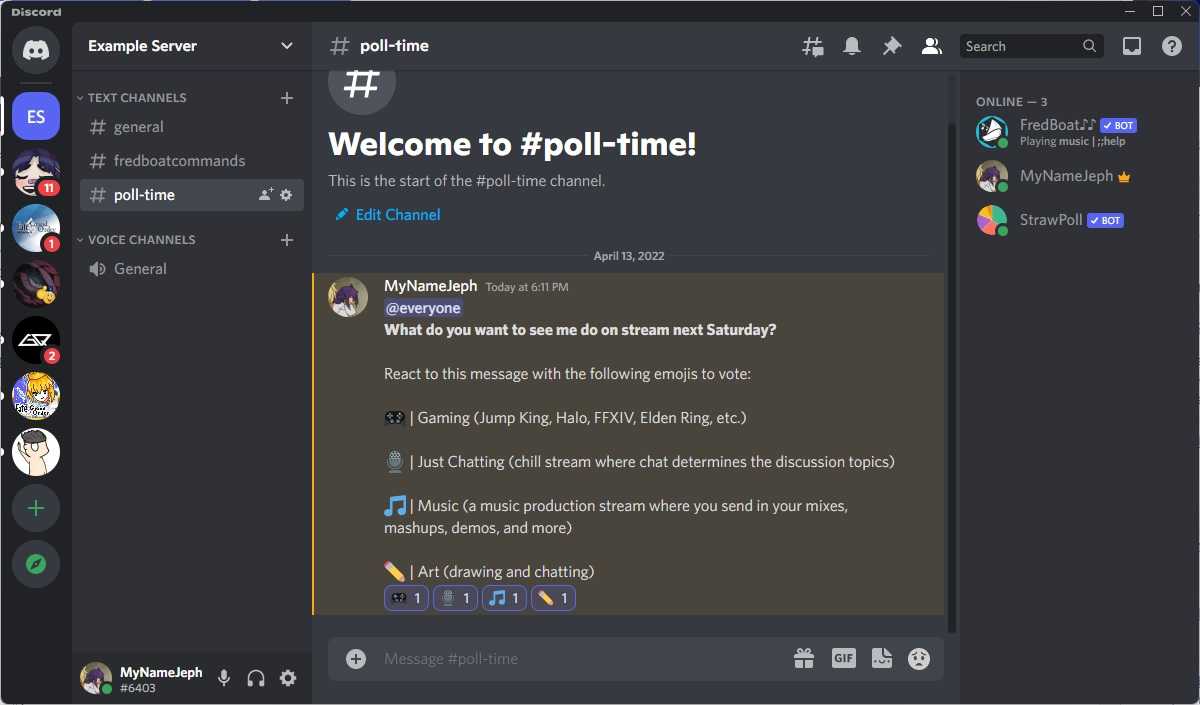 Определенно есть несколько, и нет однозначного «лучшего» бота для опроса Discord. Однако нам нравится StrawPoll за простоту использования.