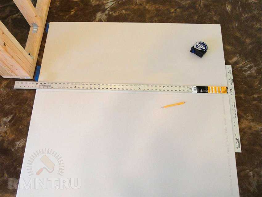Настройте дисковую пилу так, чтобы не пропилить плиту слишком глубоко, а недостаточная глубина пропила затруднит сгибание и плиту можно даже сломать. Недопил должен составлять примерно 1мм.